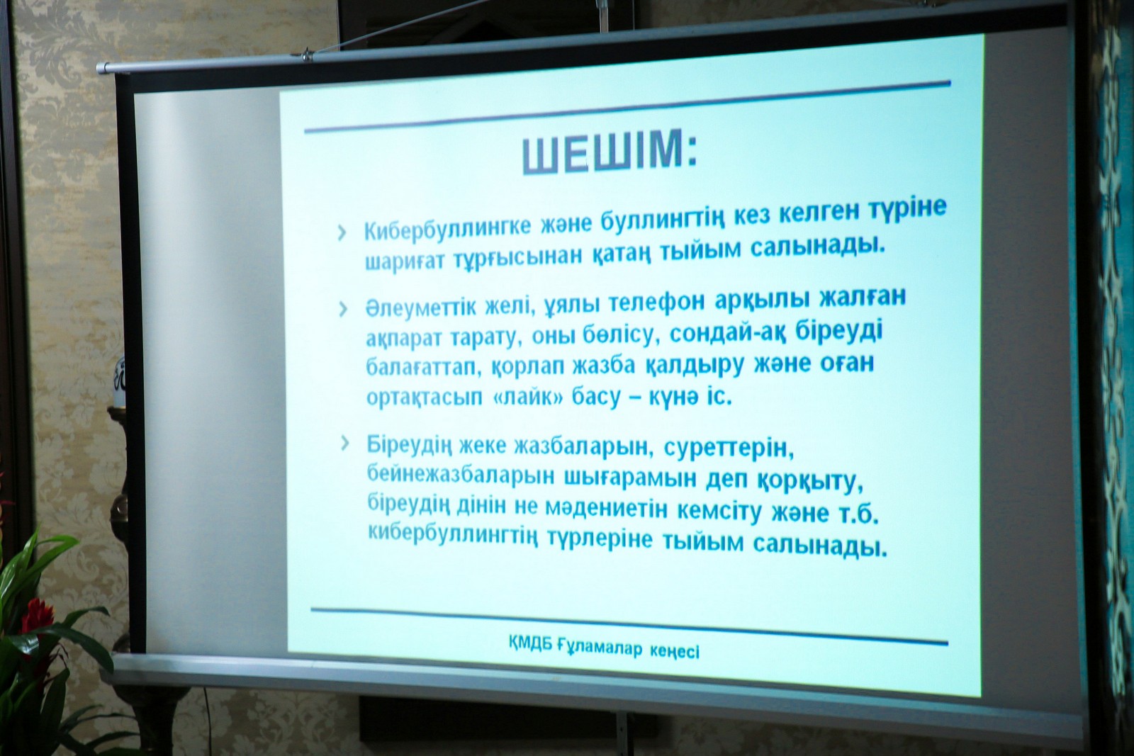 «ÁZIRET SULTAN» MEShITINDE KIBERBÝLLINGTIŃ ShARIǴI ÚKIMI TANYSTYRYLDY (FOTO)