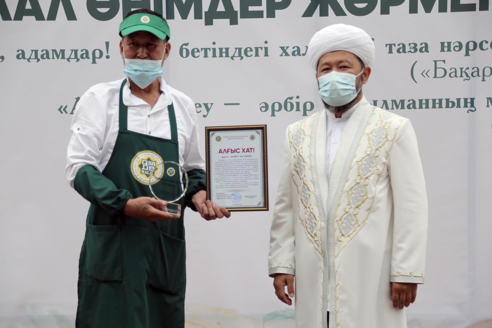 Бас мүфти отандық ең үздік халал кәсіпорындарын алғыс хатпен марапаттап, ізгі ниетін жеткізді. Сонымен қатар «Халал Даму» ЖШС қызметкерлерін мерекелік медальмен марапаттады.