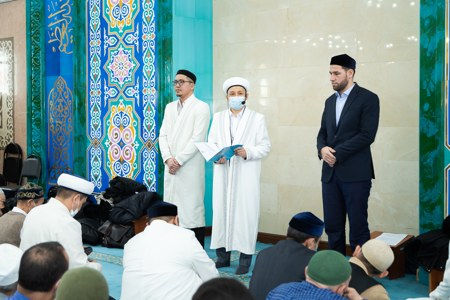 Сондай-ақ, бұған дейін «Әбу Насыр әл-Фараби» мешітінің азаншысы қызметін абыроймен атқарып келген қари Хадиршаев Салман Абдулхафизұлына мешіт ұжымы атынан құрметпен шапан жауып, алғыс айтып, сый-сияпат жасады.