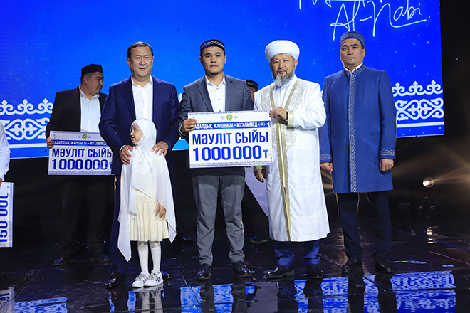 Алматы қаласының Республика сарайында Қазақстан мұсылмандары діни басқармасының бастамасымен өткен «Адалдық жаршысы Мұхаммед ﷺ» рухани мәуліт кешінде қайырымдылық шарасы ұйымдастырылды.