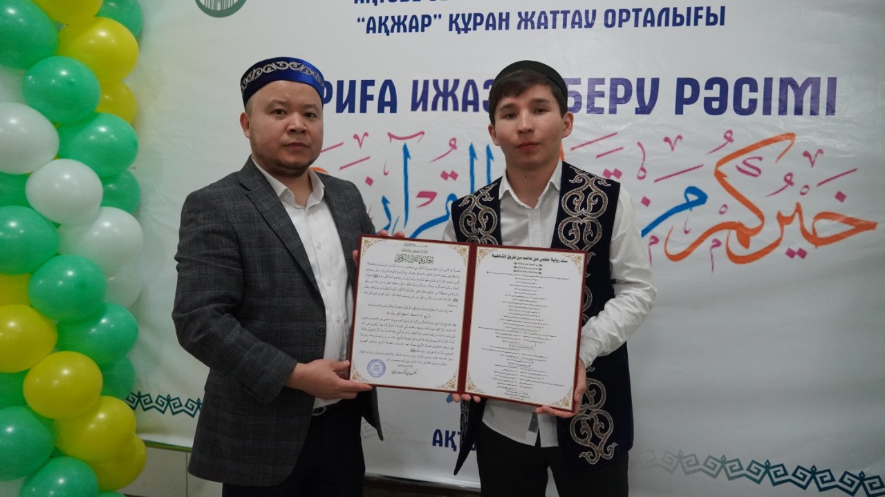 Ақтөбе облыстық «Нұр Ғасыр» мешітінде наиб имам, «Ақжар» қайырымдылық мекемесінің (қарилар орталығы) директоры Бекжан қари Әлденовтің шәкіртіне ижаза беру рәсімі салтанатты түрде өтті.