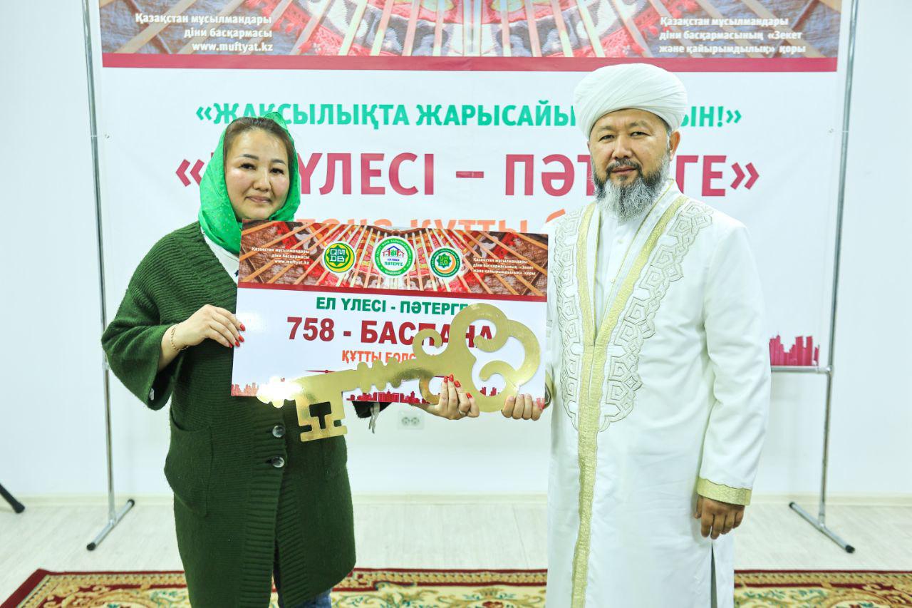Өткен аптада ҚМДБ Төрағасы, Бас мүфти Наурызбай қажы Тағанұлының бастамасымен «Зекет және қайырымдылық» қорының «Ел – үлесі пәтерге» жобасы аясында 13 отбасы баспаналы болып, жаңа қонысқа кірді.
