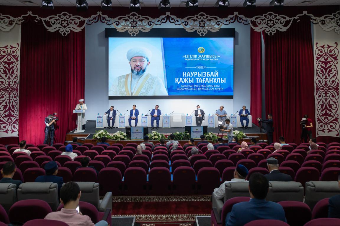 Елордадағы ҚМДБ ғимаратында өткен мүфтият журналистерінің республикалық медиафорумында БАҚ жетекшілері діни журналистиканың ақпарат айдынындағы орны, жаңа медианың жаңалықтары, шынайы ақпаратты анықтау тәсілдері, жалған діни ұрандардан сақтану жолдары, т.б. тақырыптар аясында баяндама жасады.