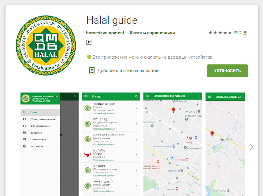 Үшіншіден, халал тамақтану орны, ет дүкені секілді кез-келген сертификатталған кәсіпорын мекен-жайының «2 Gis» картасы арқылы көрсетілуі.