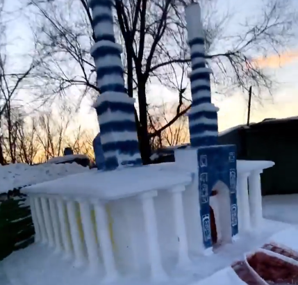 Оралдық жамағат өз ауласында қардан мешіт тұрғызды (ВИДЕО)