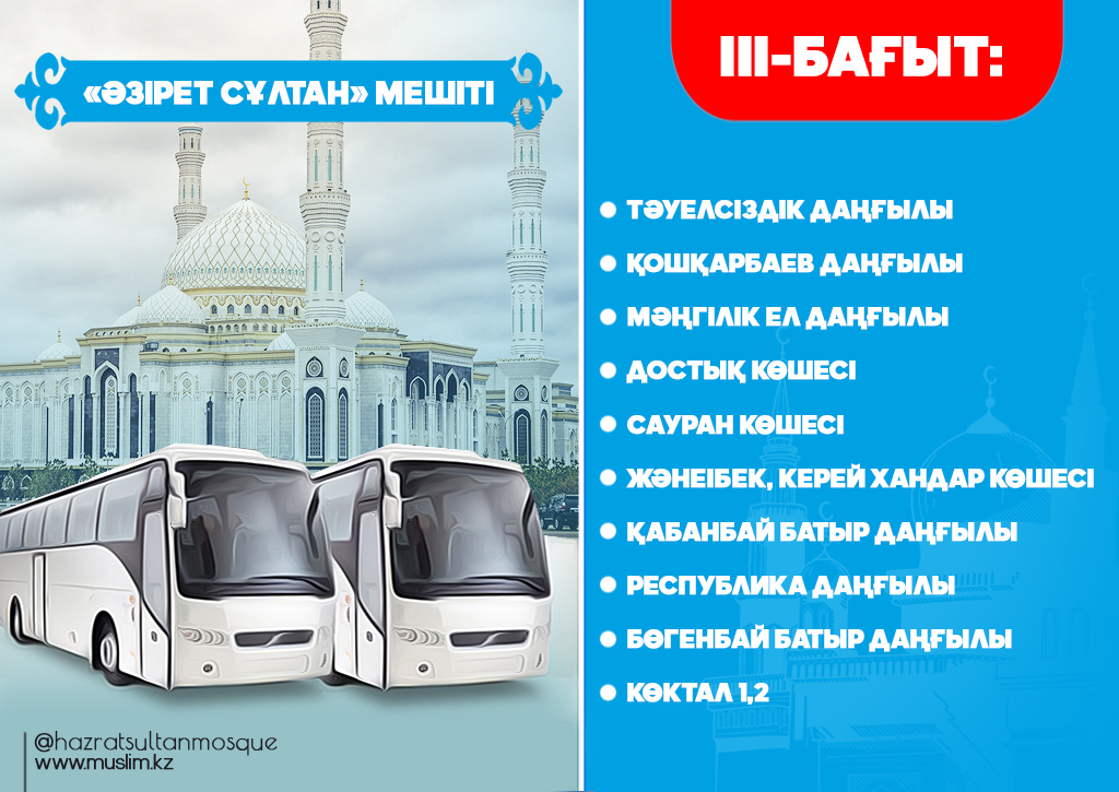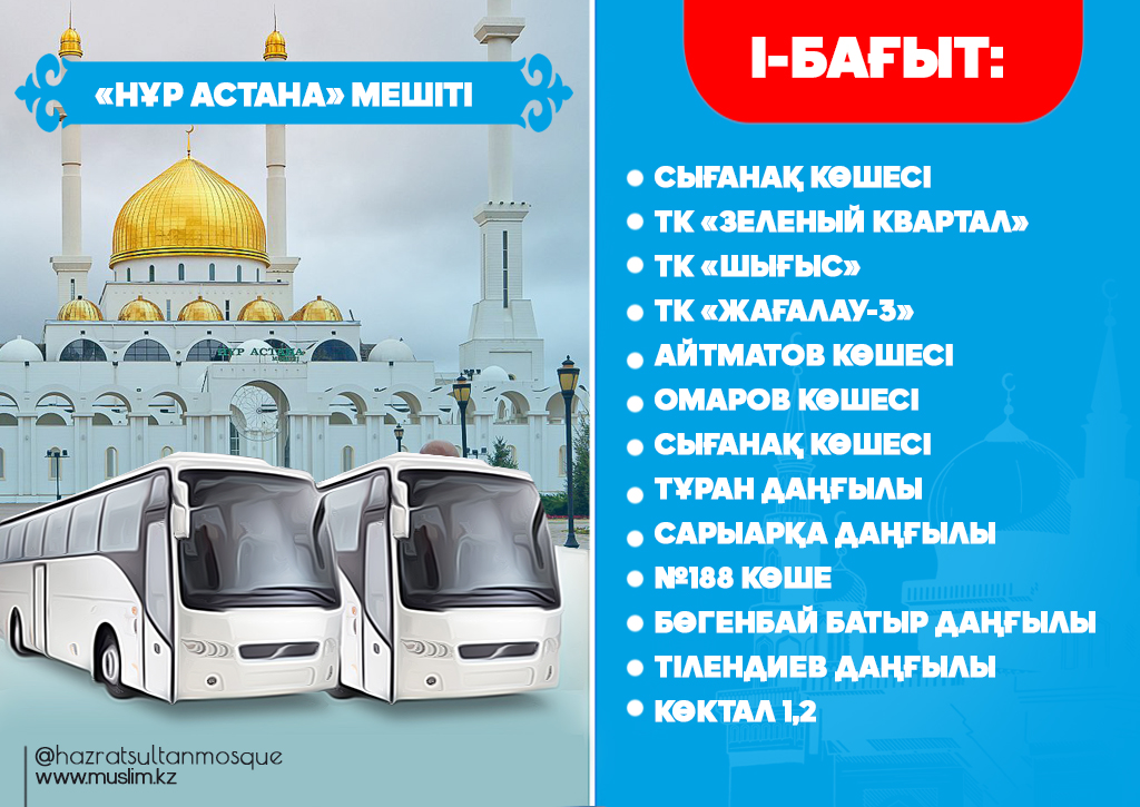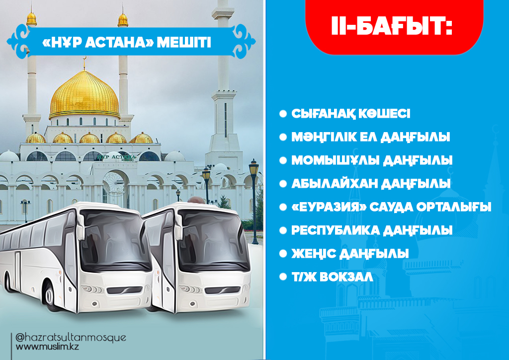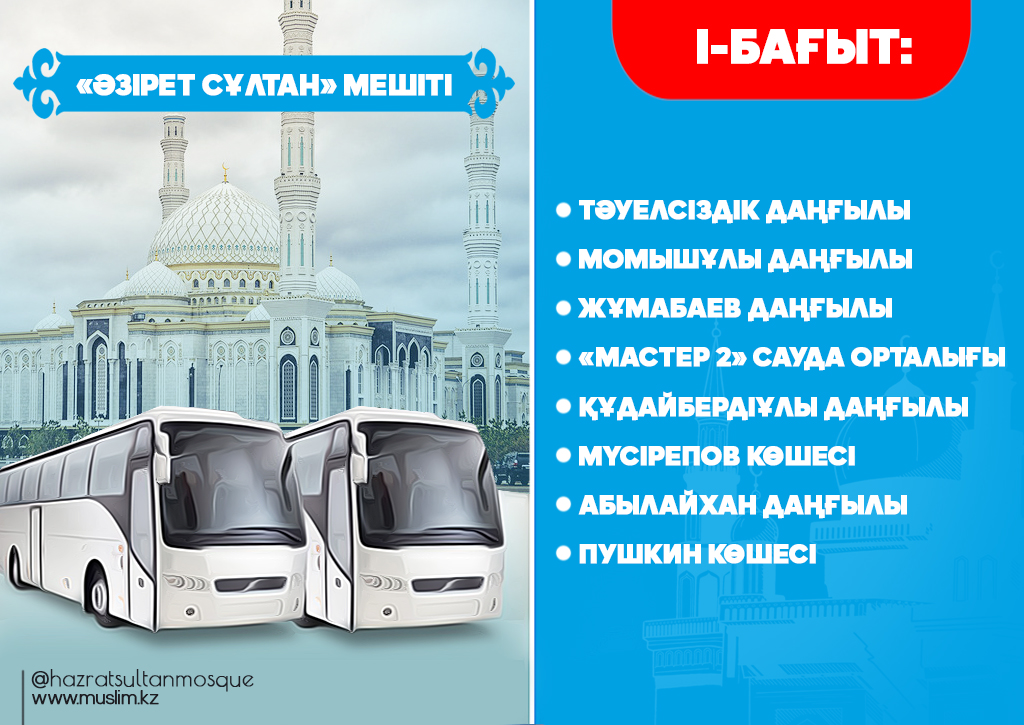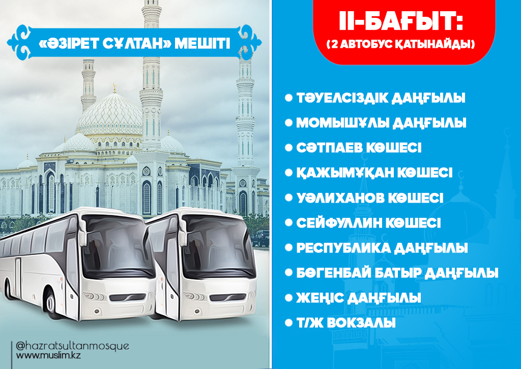 Еліміздің астанасы Нұр-Сұлтан қаласында қасиетті Рамазан айы бойы тарауих намаздарынан соң тегін автобустар қатынайтын болады. Елорда әкімшілігінің қолдауымен жыл сайын ұйымдастырылып келе жатқан игі шараның биылғы жылы аясы кеңейіп, тегін автобустармен қамтылған құлшылық ордаларының саны 5-ке жетіп отыр.