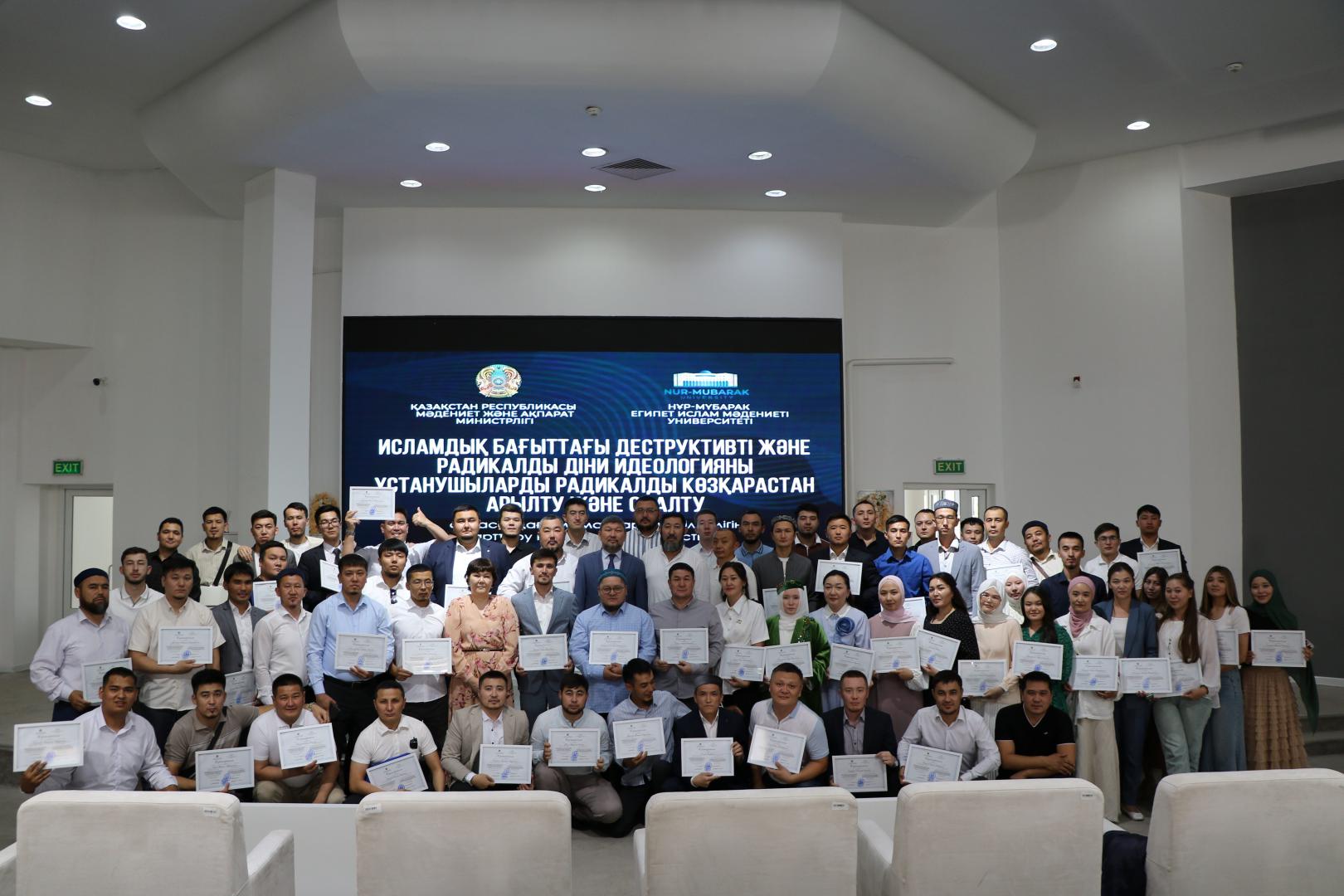 В этом году 77 религиозных работников прошли обучение в течение 140 академических часов по 15 предметам от отечественных учёных, профессоров и высококвалифицированных специалистов. Всем им были вручены специальные сертификаты, на которых указан их уровень квалификации, с подписью председателя Комитета по делам религий Министерства культуры и информации Республики Казахстан Е. Нүкежанова и проректора университета Нур-Мубарак, PhD доктора К. Курманбаева.