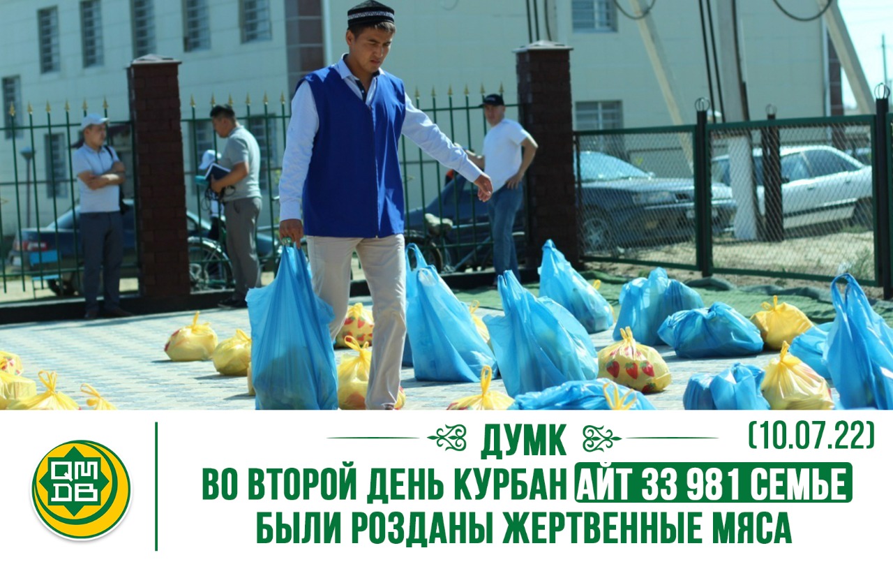 Во второй день Курбан-айт специальная рабочая группа, созданная с целью активизации благотворительных акций в великий праздник мусульманской общины, принесли в жертвоприношение 6578 овец, 618 коз, 456 голов крупного рогатого скота и 11 верблюдов, а также доставила жертвенное мясо 33 981 нуждающейся семье.