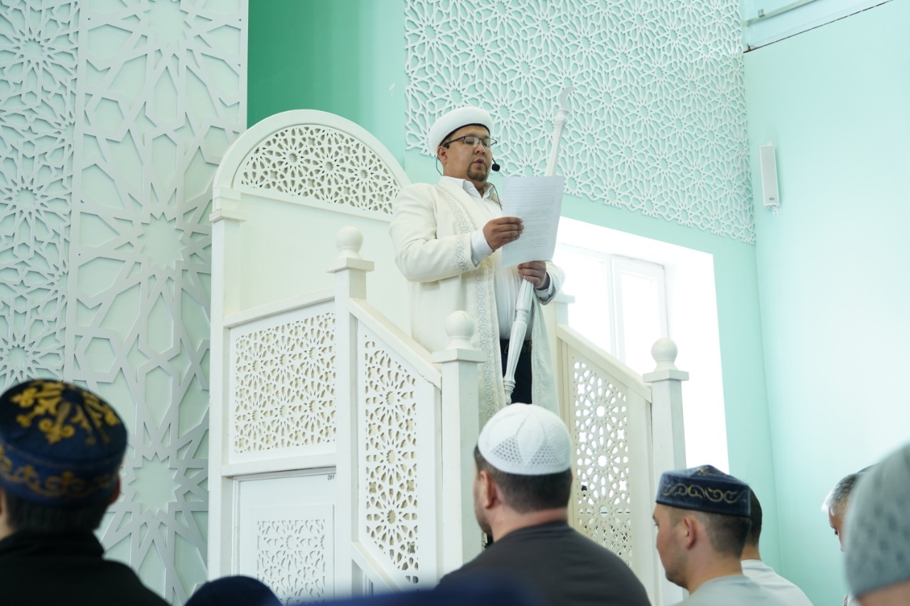 Наиб имам Республиканской мечети «Хазрет Султан» Тамирлан Дарханулы выступил с проповедью на тему «Уакф – неисчерпаемое сокровище» и представил нового главного имама собравшемуся джамаату, зачитав Приказ председателя Духовного управления мусульман Казахстана, Верховного муфтия Наурызбая кажы Таганулы.