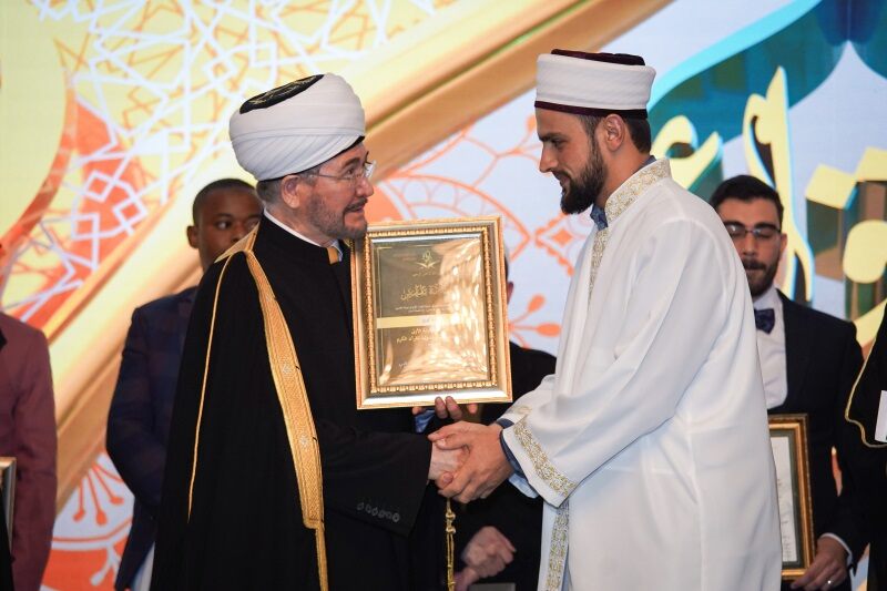 Глава ДУМ РФ и СМР выразил благодарность судейской коллегии во главе с главным имамом-хатыбом Мечети Пророка в Лучезарной Медине Шейхом Абдулмухсином Аль-Касимом, которому в этот вечер была вручена высшая награда российских мусульман – орден «Аль-Фахр».