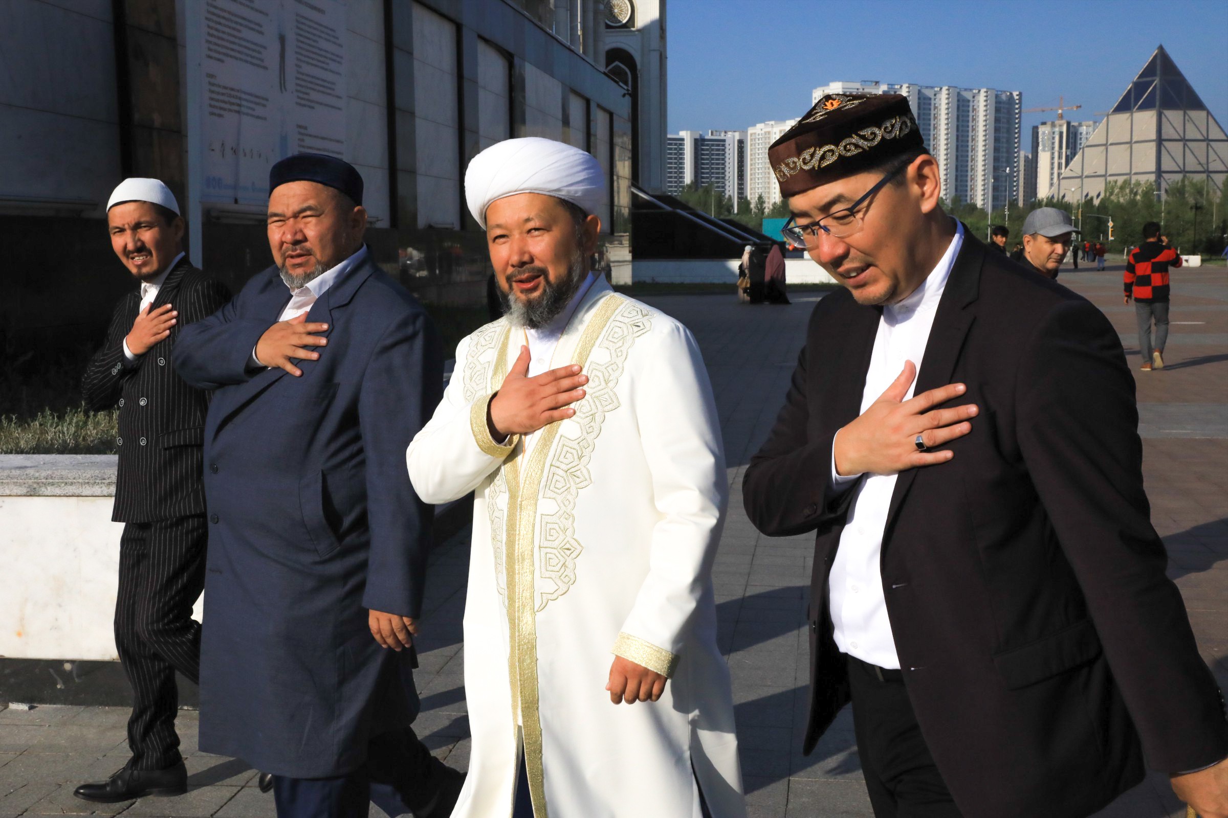 По казахской традиции для гостей поставили юрту и от имени мечети накрыли праздничный дастархан. Наши старейшины женского джамаата после Айт намаза ждали почётных гостей во главе с Председателем Духовного управления мусульман Казахстана, Верховным муфтием Наурызбаем кажы Таганулы. Его сопровождали представители ДУМК и главный имам столицы Ерболат Жусупов. Они отведали угощение и выразили свои наилучшие пожелания, а Верховный муфтий сердечно поблагодарил кажы апалар.