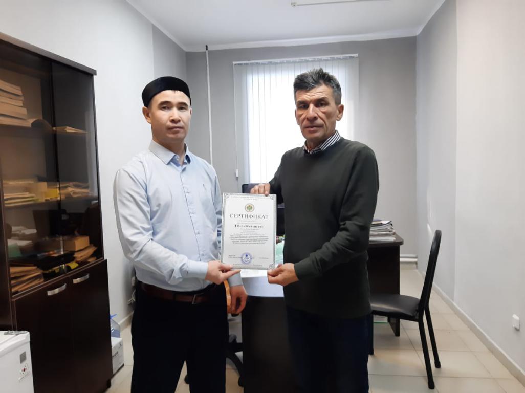 Представитель Западно-Казахстанской области по стандартизации продуктов халяль Асхат Асылбеков вручил Сертификат птицефабрике «Жайық-ет».
