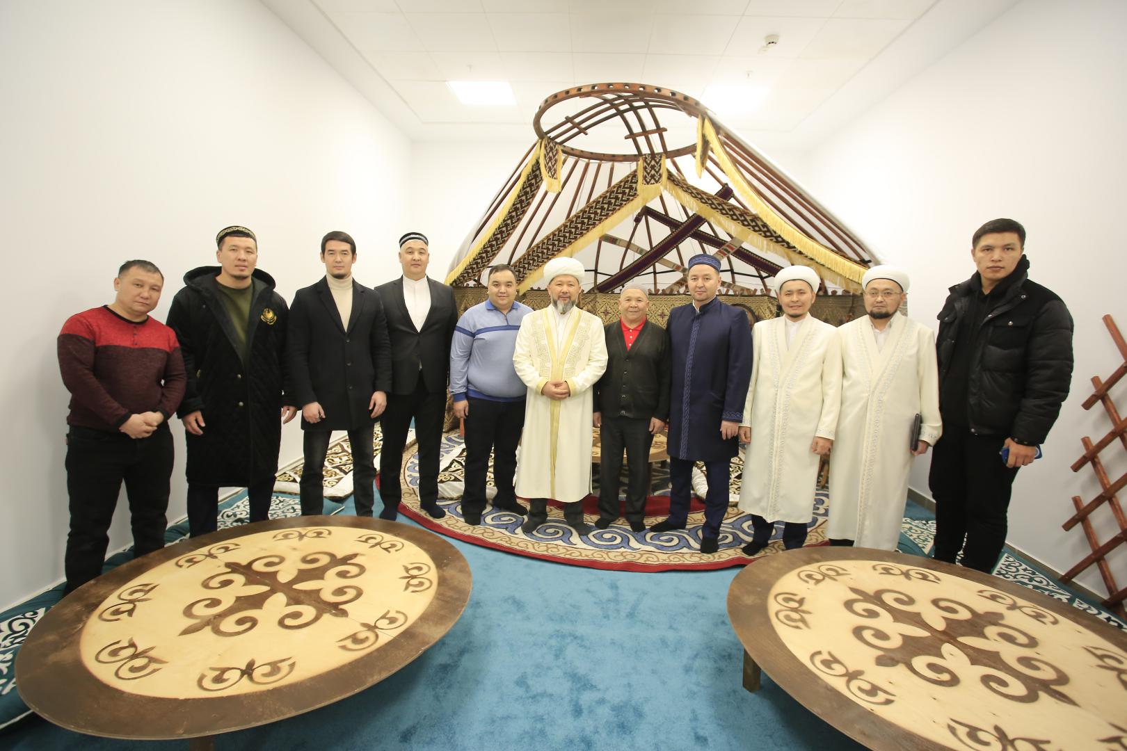 Жартылай киіз үй тігіліп, түрлі ұлттық жәдігерлермен жабдықталған орталық бөлмесі бір мезетте 120 адамға дастархан жайып, уағыз-насихат жұмыстарын жүргізуге арналған.