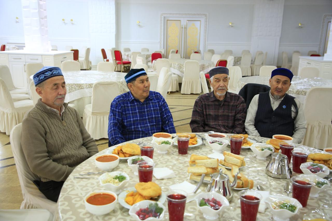 «АТАЛАР МЕКТЕБІ»: «ӘЗІРЕТ СҰЛТАН» МЕШІТІНІҢ АҚСАҚАЛ ШӘКІРТТЕРІ ДАСТАРХАНДА БАС ҚОСТЫ (ФОТО)