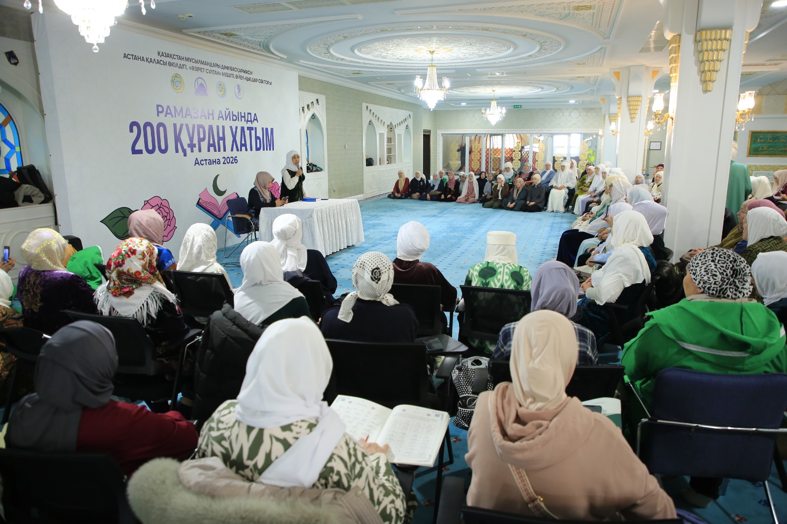 Астана қаласы өкілдігі Дәстүр және отбасы бағыты аясында Әйел-қыздар секторының ұйымдастыруымен «Әзірет Сұлтан» мешітінде Рамазан айында бір ғана әйел ұстаздардың атсалысуымен 200 рет Құран хатым етіліп, дұғасы бағышталды.