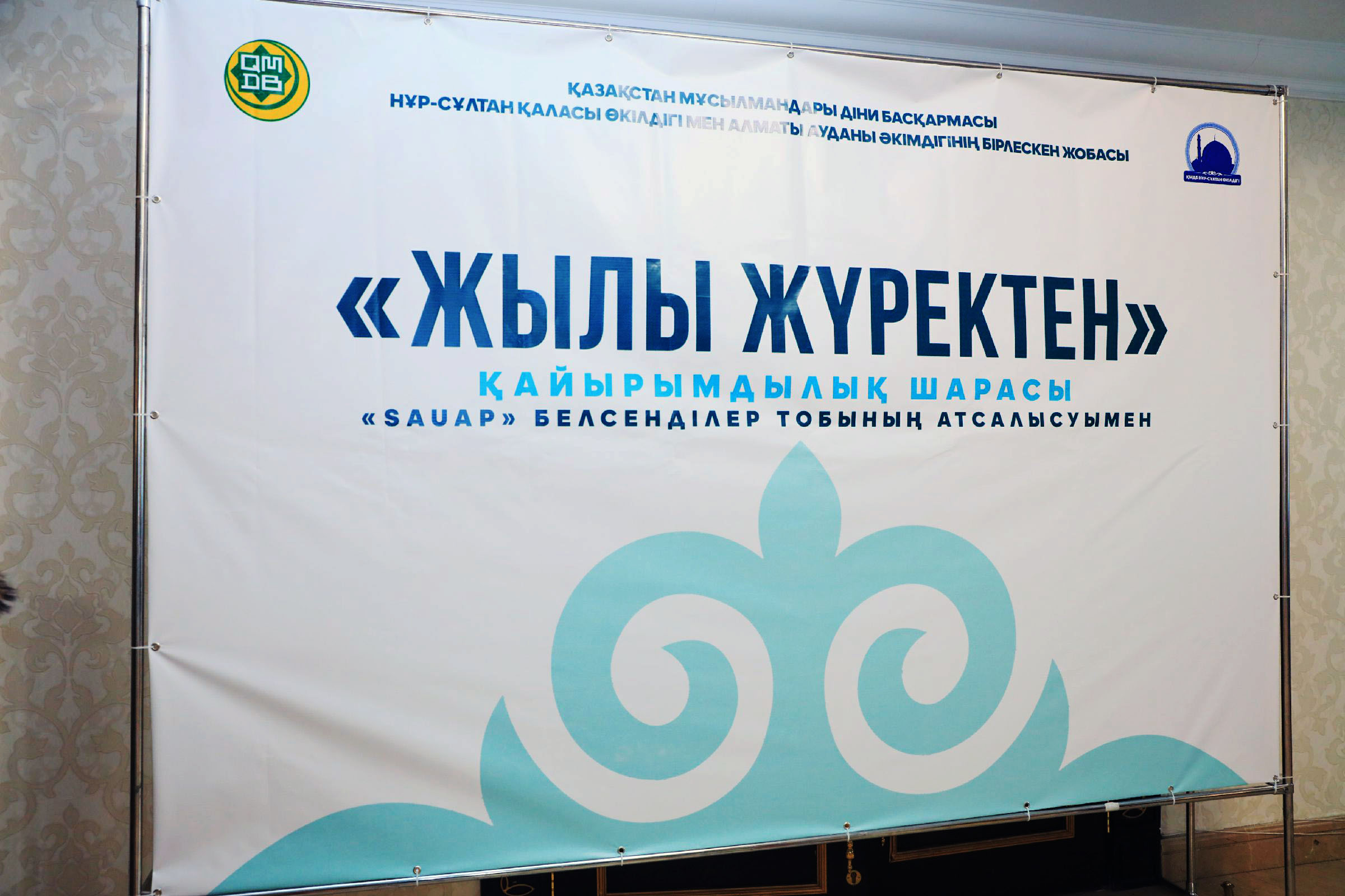 «Әзірет Сұлтан» мешітінің наиб имамы Бақытжан Өткелбаев пен «Сауап» тобының мүшесі Абзал Сұлтанбек әлеуметтік жағдайы төмен отбасыларға сөз қолдауын көрсетіп, азық-түлік салынған арнайы сөмкелерді табыс етті. Сондай-ақ, шара басырында ақ жаулықты аналар ақ батасын беріп, өз ризашылықтарын жеткізді.