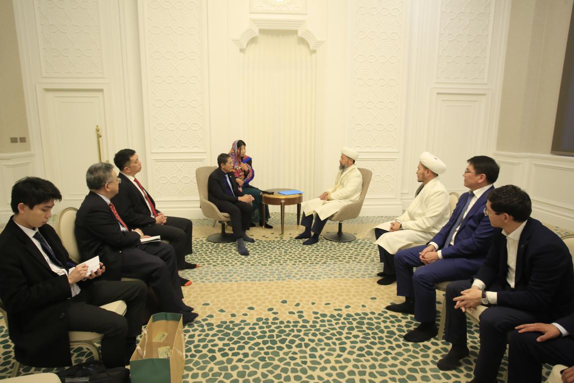 Екіжақты кездесуде дінаралық қатынас, тәжірибе алмасу, исламдық білім беру жүйесі сөз болды. Құрметті қонақты жылы қарсы алған Бас мүфти ең алдымен жаңа мешітті таныстырып, ерекшелігін атап өтті.