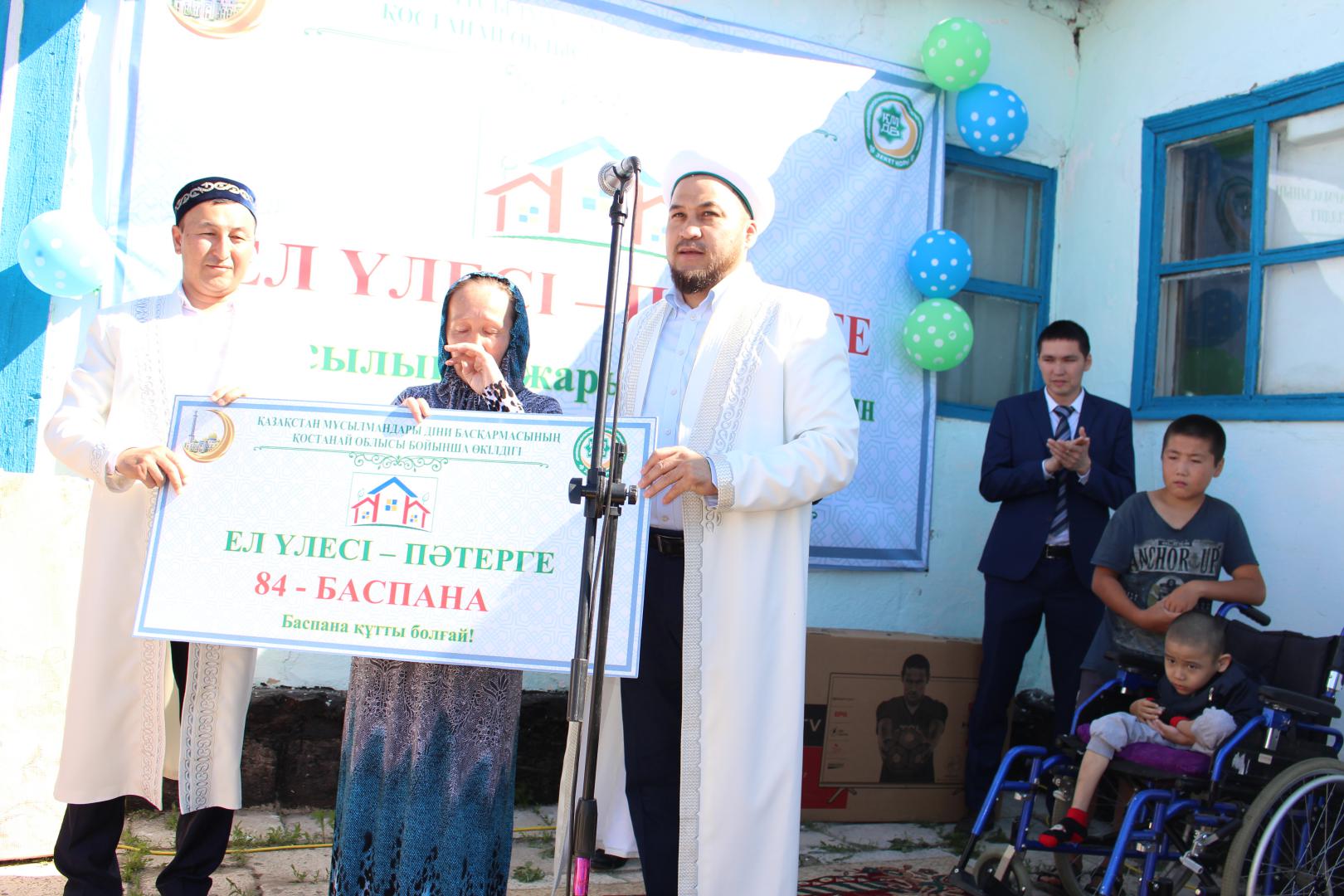 Облыс бойынша аталмыш шараның іске асуына себепші болған Қостанай облысының өкіл имамы Бахытбекқажы Нұрғабылұлы жиналған қауымға қайырымдылық, мейірімділік жайлы тұшымды уағызын айтып, баспана кілтін табыстады.