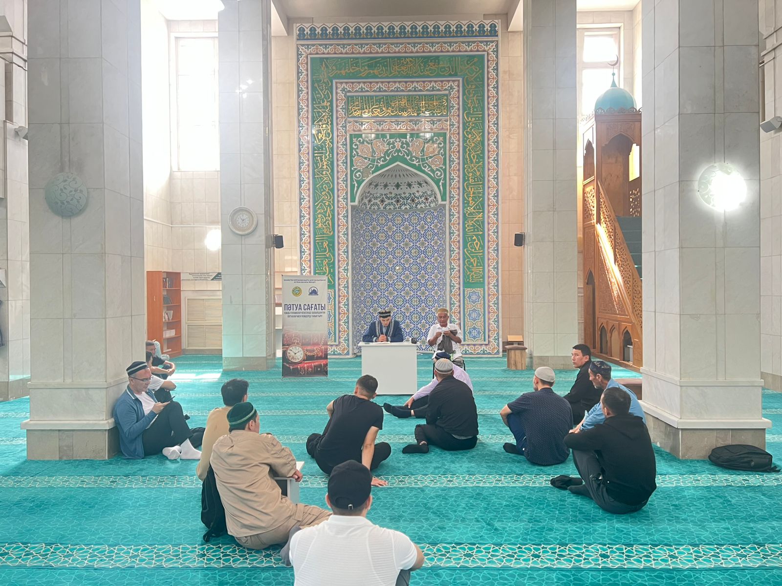 Бұл игі іс-шара мешітке келушілердің діни білімін арттырып, шариғат мәселелерін тереңірек түсінуіне мүмкіндік береді. «Пәтуа сағаты» барысында мешіт имамдары Қазақстан мұсылмандары діни басқармасының Шариғат және пәтуа бөлімі мен Ғұламалар кеңесінде бекітілген діни үкімдер мен қаулыларды жамағатқа түсіндіріп, олардың күнделікті өмірде қолданылу жолдарын көрсетеді. Сонымен қатар, қоғамда туындайтын түрлі діни сұрақтарға жауап беріп, дұрыс шешім қабылдауға бағыт-бағдар ұсынады.