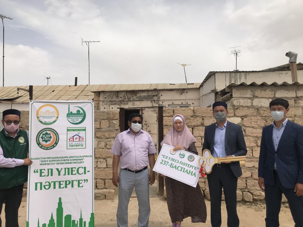 –ҚМДБ-ның «Зекет» қорының бастамасымен елімізде «Ел үлесі – пәтерге» жобасының аясында бірқатар мұқтаж отбасыларға көмек беріліп, тұрмыстық мәселелерде қолдау көрсетілуде. Игі шараның нәтижесінде, «Зекет» қоры Маңғыстау өкілдігінің ұйымдастыруымен екі жас отбасы қуанышқа бөленіп, баспаналы болды. Қос отбасы республика бойынша 236, 237-ші кезекте үй алды, - дейді облыстық Бекет ата мешітінің бас имамы Әнуар Елжанов.