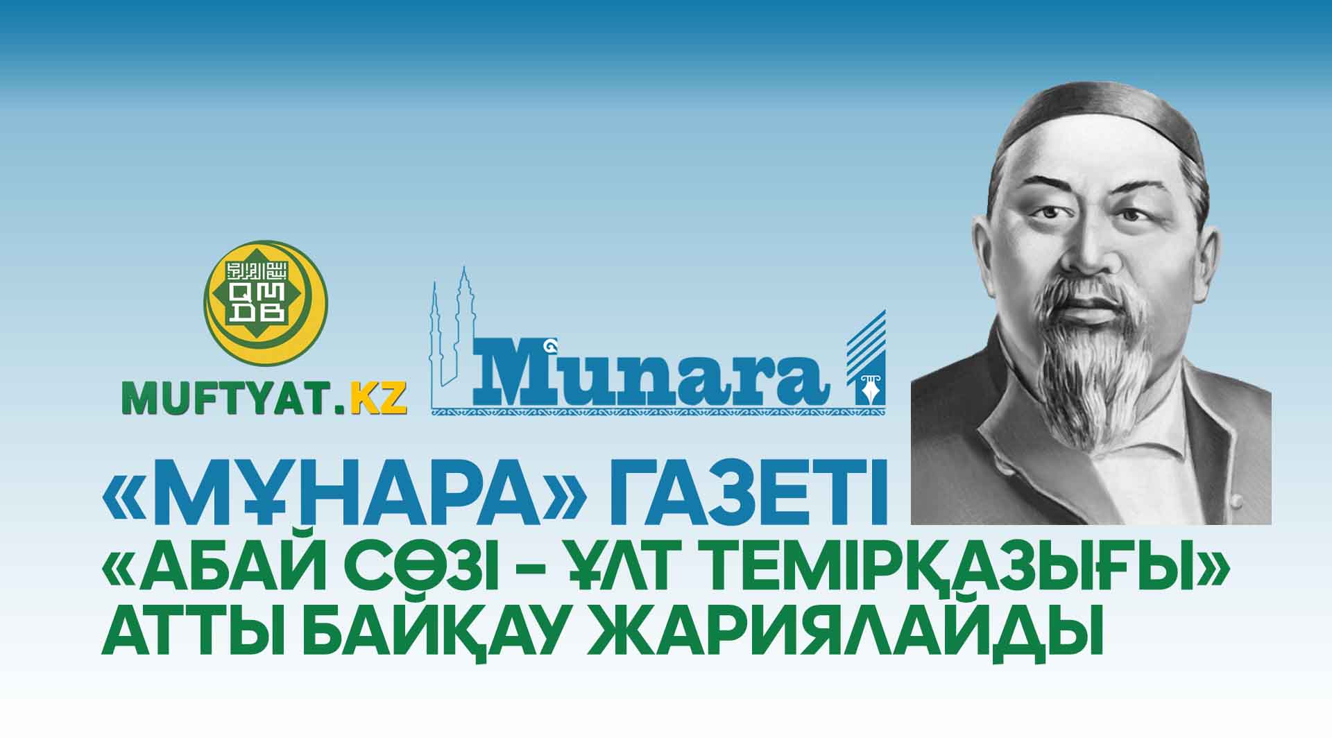 Халқымыздың біртуар перзенті, қазақ жазба әдебиетінің негізін қалаушы, ұлы ақын, ғұлама-ойшыл Абай Құнанбайұлының 175 жылдығына орай «Мұнара» газеті авторлар мен оқырмандар арасында «Абай сөзі – ұрпақ темірқазығы» атты шығармашылық байқау жариялайды.