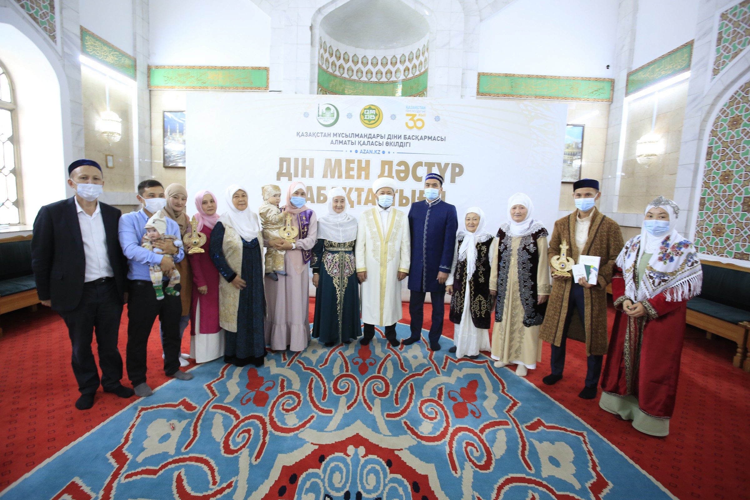 Жас жұбайлардың некесін қиған Бас мүфти Исламдағы отбасы құндылығы, ер мен әйелдің міндеттері туралы насихат айтып, батасын берді. Одан кейін кішкентай бүлдіршіннің тұсауын кесіп, азан шақырып, сәбидің есімін қойды. Қаз-қаз қадам басқан баланың болашағы үшін дұға жасап, екі өмірде бақытты болуын тіледі.