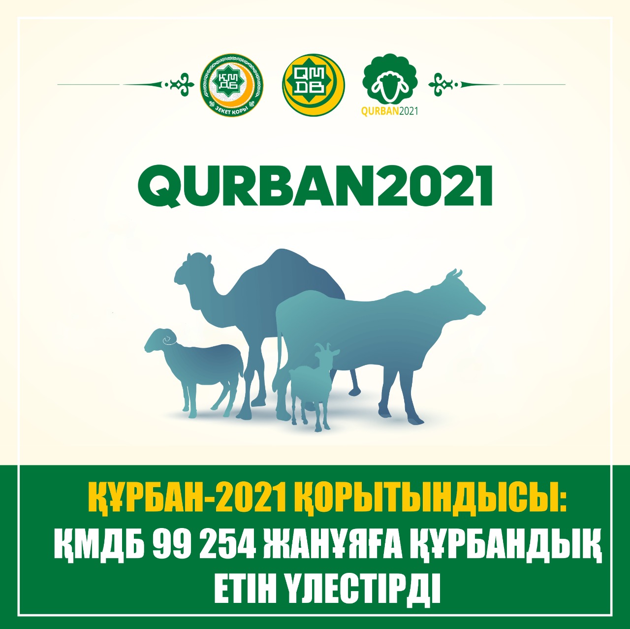 20-22 шілде аралығында өткен мұсылмандардың ұлық мерекесі – Құрбан айт күндері Qurban2021.kz сайты арқылы толықтай онлайн және кей өңірлерде жартылай дәстүрлі форматта құрбан шалынды. Осыдан бір ай бұрын мерекеге орай арнайы құрылған жұмыс штабы құрбан шалу рәсімдерін республика көлемінде ұйымдастыруды қолға алып, бүгінде жүйелі жұмысын сәтті аяқтап отыр.