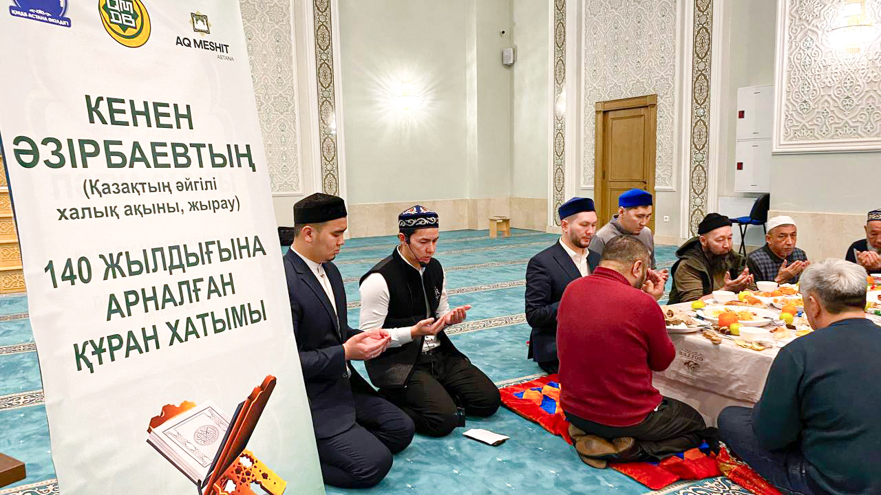 Астана қаласы «Ақмешіт» мешітінде бас имам Дәурен Муслимовтың ұйымдастыруымен қазақтың әйгілі халық ақыны, жырау Кенен Әзірбаевтың 140 жылдығына арнап Құран хатымы бағышталды.